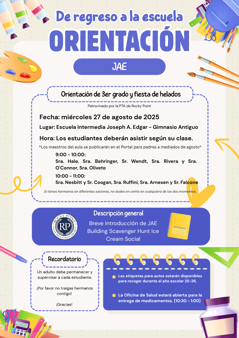 We look forward to seeing everyone next week at orientation. Please use the doors for the old gym which are located next to the cafeteria. An adult must attend to supervise the students as staff will be scattered throughout the building for a scavenger hunt (sneakers are suggested!). Medication drop off, and pick up tags will be available. Supplies should be brought on the first day of school.